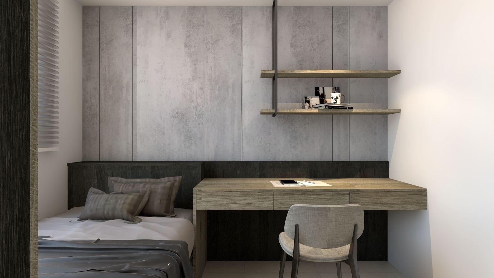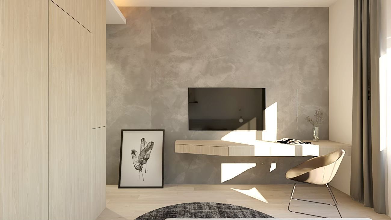 灰階石紋牆與淺木質調