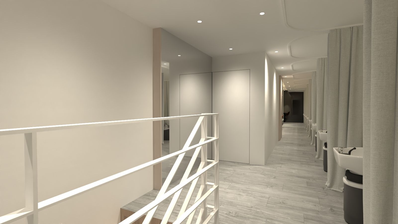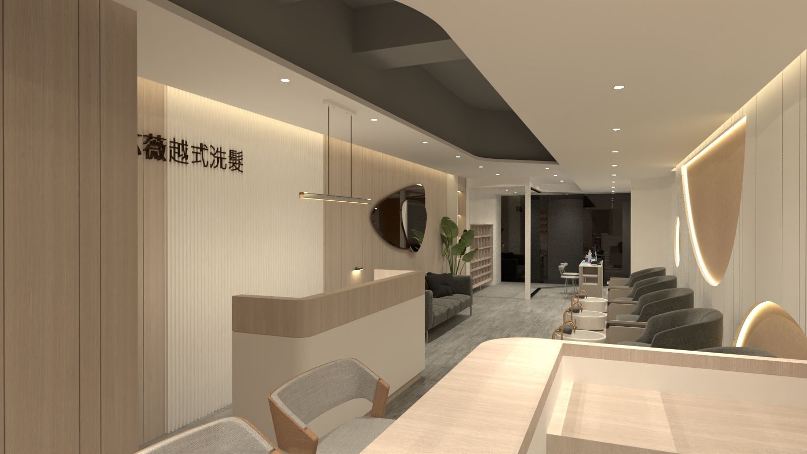 整體設計在前後場域之間形成層次分明的體驗:前區展現專業與時尚,後區則提供舒適與放鬆。透過材質、光線與動線的整合,本案成功打造出兼具現代感、專業度與療癒氛圍的越式洗髮沙龍空間。