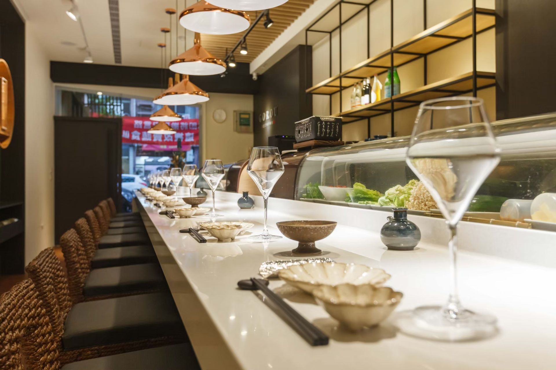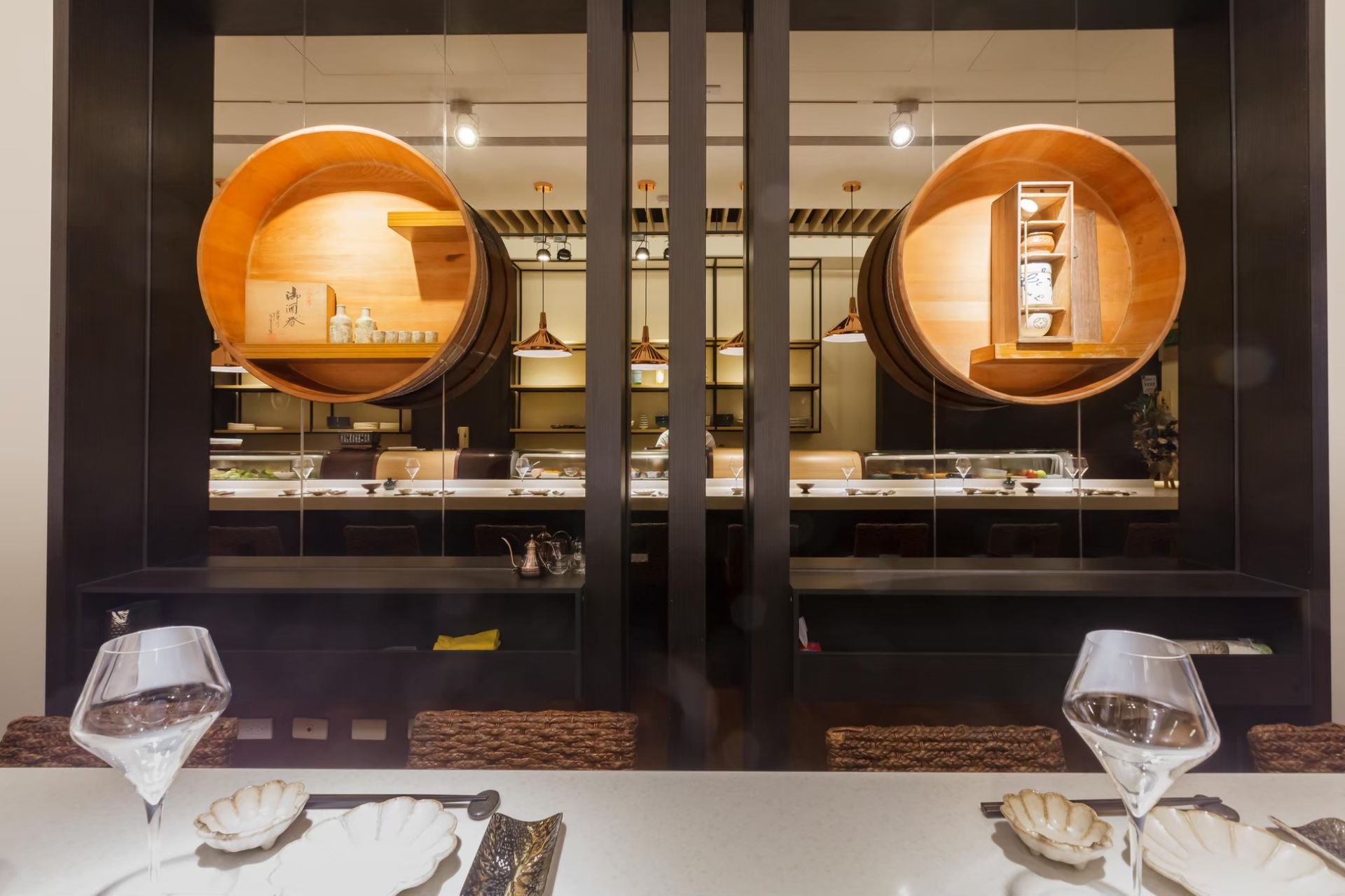 整體設計融合了傳統與現代,既保留日式餐廳的典雅氛圍,又以簡潔線條與材質搭配,呈現出當代美學。這樣的空間不僅提供用餐的場域,更是一種生活品味的展現,讓顧客在舒適氛圍中享受美食與交流的美好時光。