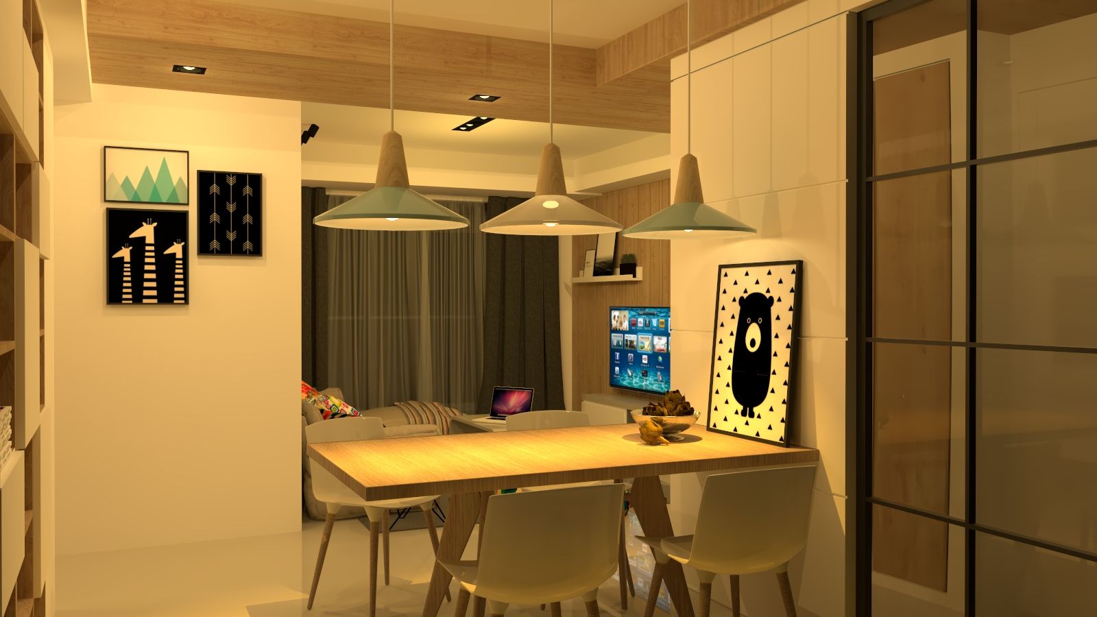 本案以北歐溫潤風格為設計主軸,透過淺色木紋與柔和灰白調性,鋪陳出自然舒適的生活氛圍。開放式客餐廳串聯廚房與用餐區,木質餐桌成為空間視覺焦點,搭配圓潤造型吊燈與溫暖光源,營造輕鬆自在的日常場景。大面採光引入自然光線,讓空間更顯通透清新。